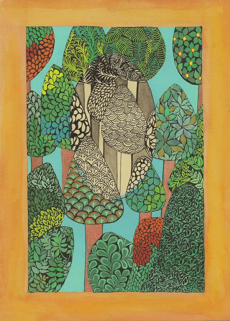 The Qalam Series: Modern Miniatures | Gouache, Watercolor, Pen, Metallic Gold Pigment